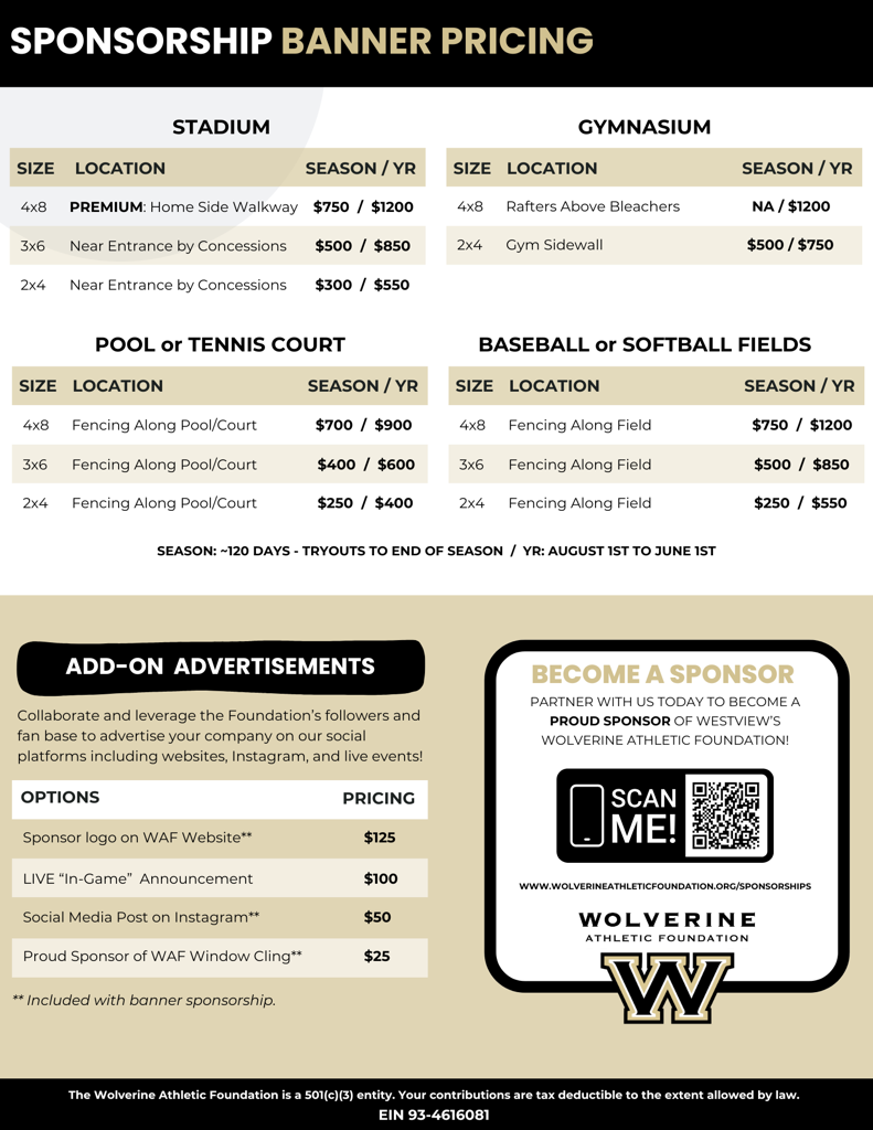 Be a 2025-2026 Westview Athletics Sponsor!